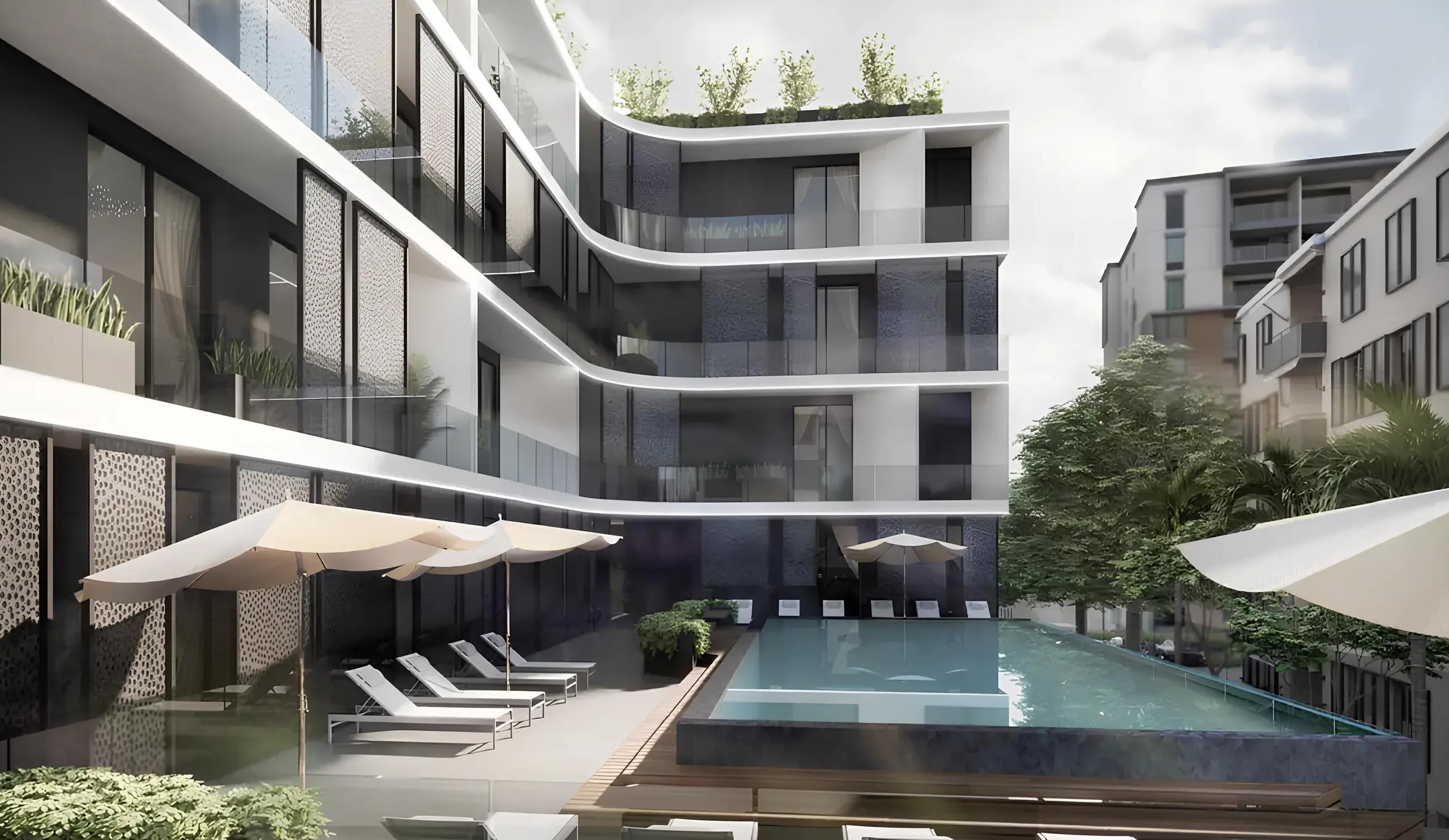 The portfolio emphasizes premium residential projects that blend design excellence with sustainable performance and well-considered amenities.